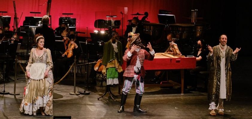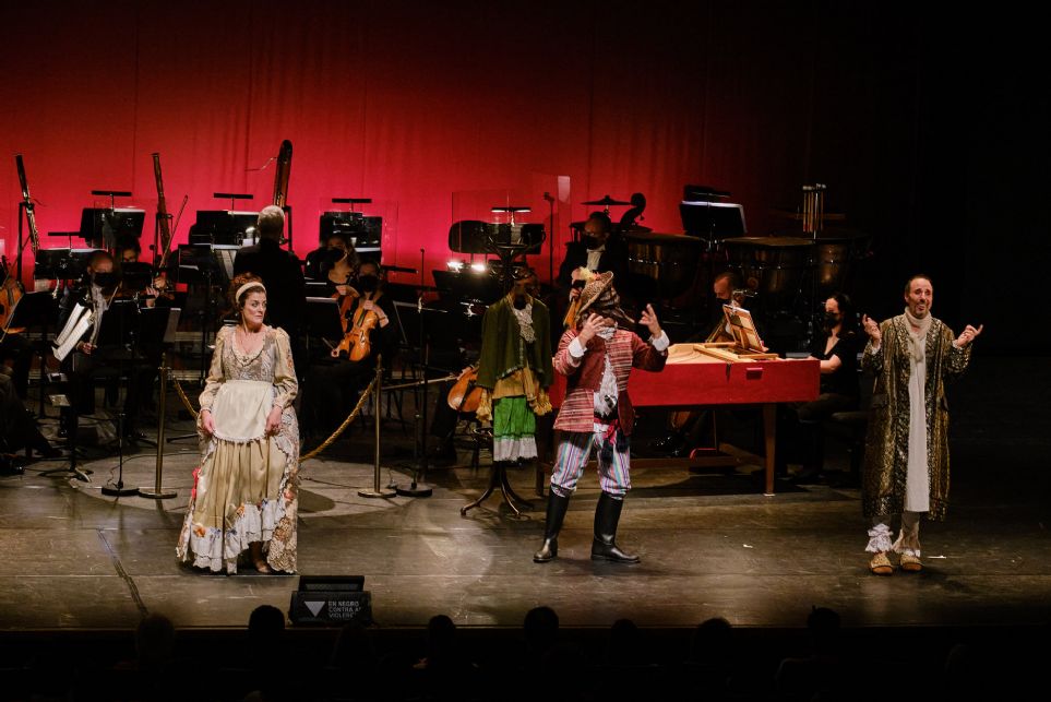 Santiago de Compostela, 9-XII-2021, Auditorio de Galicia. Programa: Giovanni Battista Pergolesi – Gennaro Antonio Federico, La serva padrona; Fernando Buide del Real – Quico Cadaval, A sombra de cristal (estreno absoluto: Encargo y coproducción de la Real Filharmonía de Galicia de Galicia, Amigos de la Ópera de Santiago de Compostela y Centro Dramático Galego, con el apoyo del Jacobeo 2021-2022). Reparto: María Hinojosa, soprano, Serpina y Cristal; César San Martín, barítono, Uberto y Trocado; Víctor Mosqueira, actor, Vespone y Marcial. Real Filharmonía de Galicia. Paul Daniel, director musical. Quico Cadaval, dirección escénica.