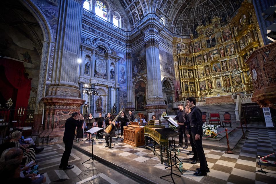 Con el evocador título Spiralem tempore, que podría traducirse como Espiral en el tiempo, se ha ofrecido la cuarta matiné del Festival con la participación de la Academia Barroca del Festival de Granada, institución vinculada a los Cursos Manuel de Falla organizados dentro a las actividades de tan importante evento musical de la ciudad nazarí, que en este año cumplen su quincuagésima sexta edición, interpretando un programa en el que se ha querido recordar la figura de Alessandro Scarlatti, del que se conmemora el tercer centenario de su muerte, acompañado de tres obras del compositor granadino José García Román, que el próximo mes de octubre cumplirá su ochenta aniversario. Por un lado encontramos a una de las grandes figuras del barroco italiano y por otro a uno de los creadores musicales más relevantes de su generación en España durante las últimas seis décadas, dada su inquietud creativa distinguida por la calidad y diversidad de su personal estética.