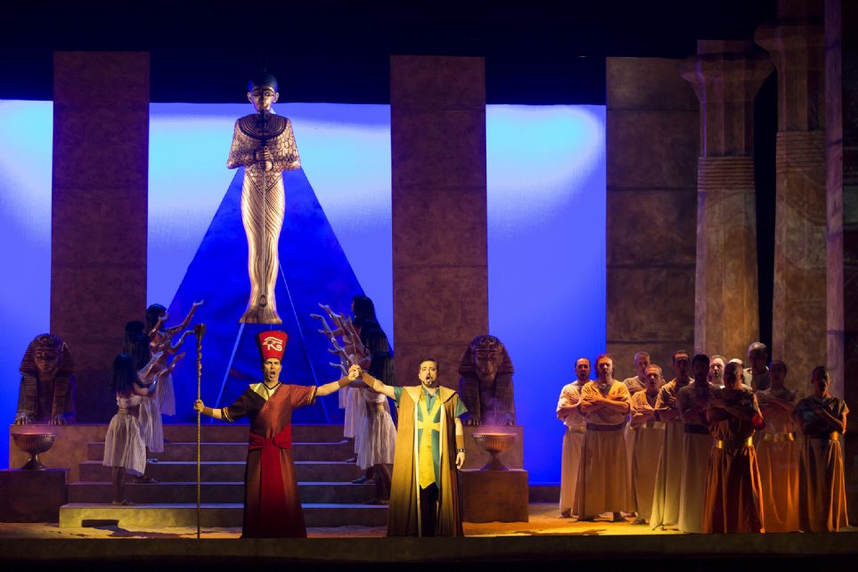 Málaga. Teatro Cervantes. 3-III-2019. Giuseppe Verdi: Aida. Christian Díaz (El Rey), Mali Corbacho (Amneris), Maribel Ortega (Aida), Alejandro Roy (Radamès), Felipe Bou (Ramfis), Luis Cansino (Amonasro), Antonio Bermúdez (Un mensajero), María Lourdes Benítez (Una sacerdotisa). Coro de Ópera de Málaga (Salvador Vázquez, director del coro). Orquesta Filarmónica de Málaga. Arturo Díez Boscovich, dirección musical. Ignacio García y Aurora Cano, dirección escénica. Telón Producciones