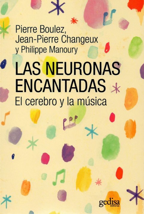 En esta línea Gedisa editorial, que cuenta con un catálogo importante dedicado a la filosofía y a la estética, también ha incluido títulos científicos sin descuidar la relación entre la música y la ciencia. En su último lanzamiento, Las neuronas encantadas, presenta una traducción del original francés Les neurones enchantés de 2014, que está estructurado en siete capítulos presenta una densa conversación a tres bandas entre el director y compositor Pierre Boulez, el neurobiólogo Jean-Pierre Changeux y el también compositor Philippe Manoury. Entre ellos aflora una amplia variedad de temas y preguntas que discurren fluidamente un sinfín de temas entorno la música y el cerebro. Entre éstos cabe citar el vínculo entre música y lenguaje, la fisiología del sonido y la percepción musical, la semiología, la sinestesia y vínculos con otras artes; las analogías entre la investigación científica y la creación musical y, lo bello del arte y los conceptos de acabamiento y de novedad asociado a la renovación y no al progreso. Tampoco faltan referencias a la obra de Boulez, quien como de costumbre aporta su espíritu crítico, su sensatez y su capacidad de estructura. Por esto la lectura de este volumen se convierte también en una fuente de riqueza y pragmatismo donde uno de los ejes principales radica en sus obras y sus experiencias como compositor. Por último deben señalarse tres errores: el cuadro de Goya es el 2 de mayo no el 3; la traducción reincide en “las armónicas” en vez de “los armónicos” y la solapa de la contraportada indica que Philippe Manoury, nacido en 1952, estudió con Arnold Schoenberg. Imposible, el compositor vienés murió el 1951.