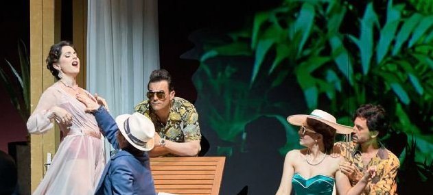 En esta ocasión hay que subrayar el acierto de una producción escénica que se ofreció con un único descanso de veinte minutos. La propuesta de Lotte de Beer, sin llegar a suponer particularmente creativa y a pesar de cierta monotonía estética, resuelve con bastante coherencia y audacia las relaciones interpersonales cambiantes de los distintos personajes en un entorno condicionado por la personalidad perturbadora de la protagonista. Ambientada en una suerte de resort de lujo a mediados del siglo XX, con una escenografía que al ir girando y subdividiéndose nos ofrece distintas estancias de este (desde zonas comunes como el salón-bar hasta las más privadas) hasta descomponerse para generar un espacio vacío y, por ende, desolador conforme se deshace el conjuro de Alcina, revelando no solo la realidad de su impotencia, sino especialmente su temida soledad. La directora alemana, muy resolutiva en la dirección de actores, se sirve además de un nutrido de figurinistas masculinos que acentúan el carácter perverso y dominante de la protagonista así como de una actriz como trasunto de la maga en la madurez.