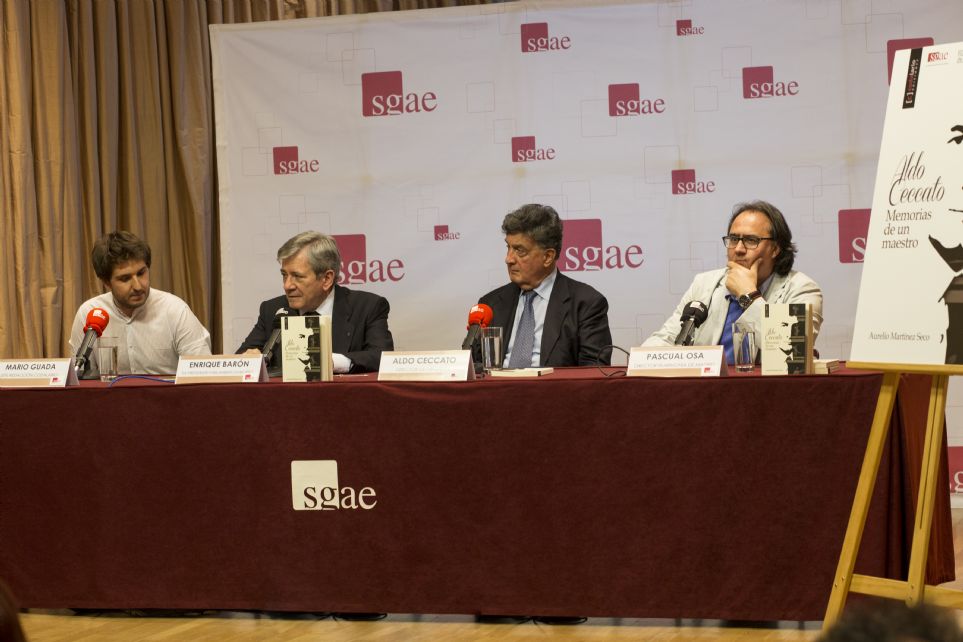 El pasado día 5 de julio la Sala Manuel de Falla del edificio de la SGAE de Madrid acogió la presentación en la capital española de la biografía del gran director de orquesta italiano Aldo Ceccato que lleva por título: "Aldo Ceccato, memorias de un maestro", un libro publicado por Codalario Ediciones y escrito por el musicólogo y director de CODALARIO, Aurelio Martínez Seco. A la presentación, que levantó una gran expectación entre los aficionados madrileños, que llenaron completamente la sala, acudió el propio Ceccato, Mario Guada, jefe de redacción de CODALARIO, Pascual Osa, director de orquesta y Enrique Barón, expresidente del Parlamento Europeo.