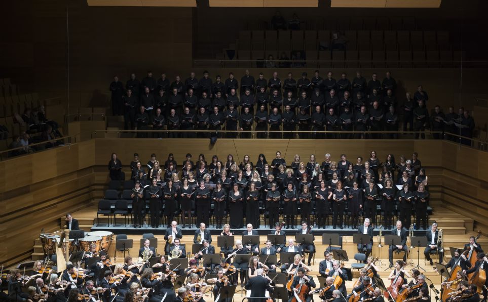 Valladolid. 15-XI-2018. Auditorio de Valladolid, Sala sinfónica Jesús López Cobos. Orquesta Sinfónica de Castilla y León. Directores: Andrés Salado, Lucas Macías, Jordi Casas y François López-Ferrer. Solista: Patricia Cordero, violín. Coros: Harmonia, Discantus, Alterum Cor, Piccolo y Audi-Nos. Obras: Sinfonía Nº30 en re mayor, K.202/186b de Mozart, Romanza para violín y orquesta nº2 en fa mayor, op. 50 de Beethoven, el Adagietto de la Sinfonía Nº5 en do sostenido menor de Mahler, La canción del destino, op. 54 de Brahms, el IV movimiento de la Sinfonía Nº1 en do menor, op. 68 de Brahms e In Paradisum del Requiem en re menor, op. 58 de Fauré.