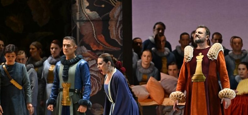 Se inicia la LXXVII Temporada de Ópera de Oviedo en el Teatro Campoamor con Anna Bolena, una producción propia de esta poco transitada ópera de Donizetti que tan solo se había representado en dos ocasiones anteriores sobre estas tablas, la última de ellas hace casi un cuarto de siglo. La dirección de escena de la que ahora nos ocupa, estuvo a cargo de Emilio López que visualiza esta ópera como una partida de ajedrez en un juego de poder y estrategia del rey Enrique VIII para deshacerse de su segunda esposa, Ana Bolena, en favor de su nueva amante, Jane Seymour, por lo que establece un damero como suelo sobre el que transcurre toda la acción. La representación del ajedrez también se manifiesta con apliques de las distintas piezas en el vestuario de todo el elenco, con la reina invertida en la ropa de Ana Bolena, símbolo de su trágico final, y sin equipo contrincante, pues todas las piezas eran blancas, probablemente debido a que los conflictos de Enrique VIII presentados en esta obra se encontraban en su propia corte. Aunque López parte de una interesante metáfora para narrar la historia, lo cierto es que, a la hora de llevarla a la práctica queda diluida, sin sacar partido a su idea por una dirección escénica demasiado simple. De igual modo, la idea del vestuario de Naiara Beistegui resulta atractiva si bien adolece de demasiada homogeneidad entre algunos personajes donde el rango jerárquico no siempre está claramente definido.
