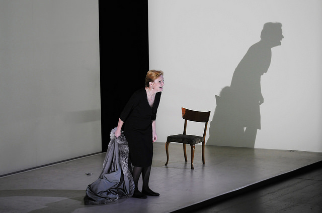 La producción de Christof Loy, vista ya en Frankfurt y Amsterdam, carece por lo general de la ambición que este director de escena ha mostrado en otros trabajos, siendo poco más que una recreación literal de lo marcado por el libreto en un espacio bastante aséptico y, eso sí, bajo el acento de una dirección de actores por lo general estimulante, que apenas alcanza a llenar el vacío de una escenografía que renuncia al oropel y el derroche de viejos mimbres. Pero a su propuesta, en conjunto, le falta ironía, incisión y valentía en suma para ir más allá de una recreación simplemente aseada y fingidamente moderna. Un trabajo, pues, de gran limpieza pero a todas luces poco expresivo. De no contar con dos grandes solistas como Schwanewilms y Volle, la función habría perdido muchos enteros.