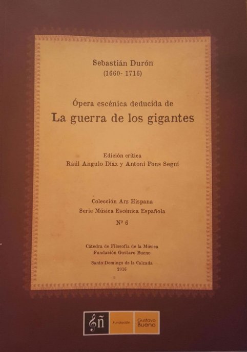 Ars Hispana prosigue con su trabajo de edición de algunas de las partituras más representativas del patrimonio musical español de los siglos XVI al XIX. En este caso, el proyecto dirigido por el musicólogo Raúl Angulo Díaz acaba de realizar la edición crítica de la Ópera escénica deducida de la guerra de los gigantes, de Sebastián Durón, compositor del que este año se cumplen 300 de su muerte y que, según leemos en la edición de la obra, habría sido realizada por el compositor español para celebrar la boda de Felipe V. Se trata del ejemplar nº 6 de la colección Ars Hispana, de la Serie Música Escénica Española, realizada por el propio Raúl Angulo Díaz y Antoni Pons Seguí.