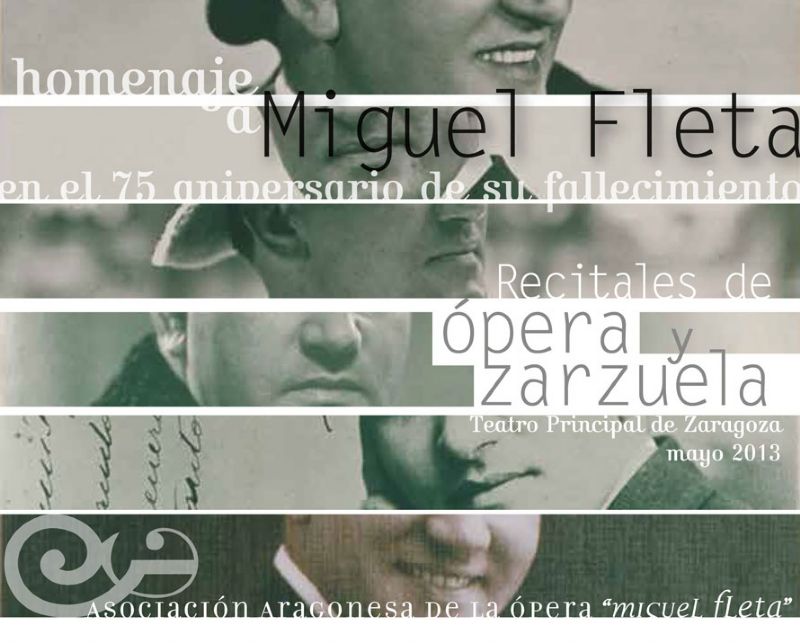 El homenaje a Miguel Fleta que organiza la Asociación Aragonesa de la Ópera que  lleva su nombre continúa este fin de semana. Hoy está prevista una mesa redonda sobre la Ópera y la Zarzuela en la Zaragoza del siglo XX,  con la participación del tenor Pedro Lavirgen, la soprano Mirna  Lacambra, el gerente del Teatro Principal de Zaragoza, Rafael Campos, y  moderada por el periodista Antón Castro. Será a las 19:00 en el Salón de  Actos del Museo Ibercaja Camón Aznar. El domingo 26, a las 18:30, en el Teatro Principal, tendrá lugar el  segundo de los recitales organizado en homenaje al tenor aragonés. Se contará con las voces de Mikeldi Atxalandabaso y Ana Nebot, que cantarán un repertorio de ópera y zarzuela.