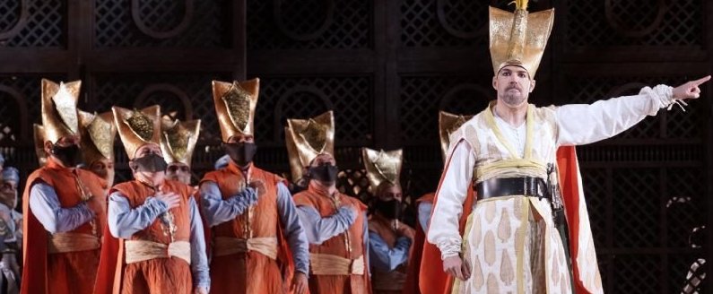 Madrid, 15 y 16-IV-2021, Teatro de la Zarzuela. Benamor (Pablo Luna). Miren Urbieta-Vega/Vanesa Goicoechea (Benamor), Cristina Faus/Carol García (Darío), César San Martín/Damián del Castillo (Juan de León), Irene Palazón (Nitetis), Gerardo Bullón (Rajah-Tabla), Amelia Font (Pantea), Emilio Sánchez (Babilón), Francisco Javier Sánchez, (Alifafe), Gerardo López (Jacinto de Fiorelia-Eunuco-Elohim), Enrique Viana (Abedul-confitero-pastelera). Coro titular del Teatro de la Zarzuela. Orquesta de la Comunidad de Madrid. Director musical: José Miguel Pérez-Sierra. Dirección de escena: Enrique Viana.