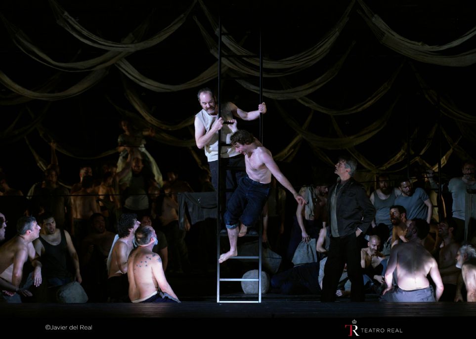 Madrid, 3-II-2017, Teatro Real. Billy Budd (Benjamin Britten). Jacques Imbrailo (Billy Budd), Toby Spence (Capitán Edward Fairfax Vere), Brindley Sherrat (John Claggart), David Soar (Mr. Flint), Thomas Oliemans (Mr. Redburn), Clive Bailey (Dansker). Dirección musical: Ivor Bolton. Dirección de escena: Deborah Warner. Escenografía: Michael Levine