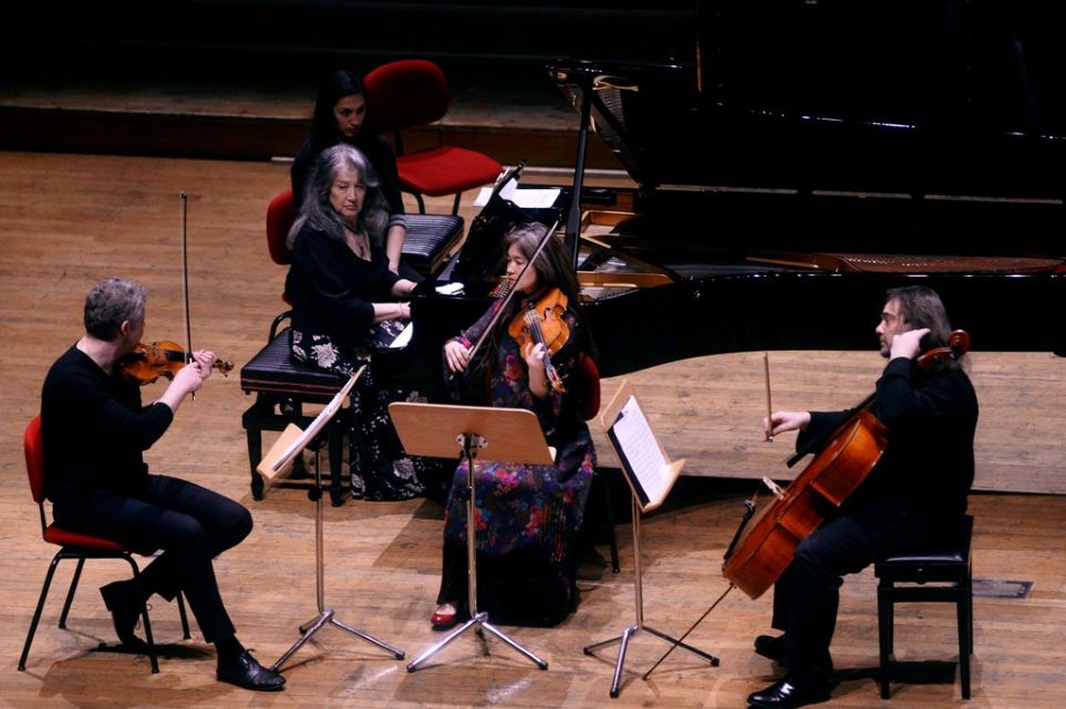 Bologna Festival 2017 ofrece en su 36ª edición las mejores orquestas internacionales con los directores más famosos en diferentes secciones que se desarrollan en lugares destacados de la ciudad en primavera y otoño de este año. Sin duda la más conocida y concurrida es la sección Grandi Interpreti, que ocupa desde marzo hasta mayo el Teatro Manzoni. La ha inaugurado la mítica pianista Martha Argerich, que entra en el escenario precedida por el Ensemble ReEncuentros, un grupo de jóvenes talentos que se destacó en el Festival de Lugano. Ella ha sido la protagonista que convocó a un público que abarrota la sala, se presentó la última, rehuyendo el protagonismo solitario en el escenario. Los instrumentistas fueron Anton Martynov, violín, Lyda Chen Argerich (hija), viola, Jorge Bosso, violoncelo, Enrico Fagone, contrabajo. Argerich también prefirió mantenerse con su instrumento en un segundo plano al interpretar el Prélude à l’après-midi d’un faune de Debussy, con el famoso pianista Eduardo Hubert. El magnífico programa dio comienzo con Beethoven, siguió con Schumann y con las Canciones populares españolas de Manuel de Falla, para terminar con Shostakovich. El público, entusiasmado pidió varios bises, que fueron concedidos, y prorrumpió en largas ovaciones.