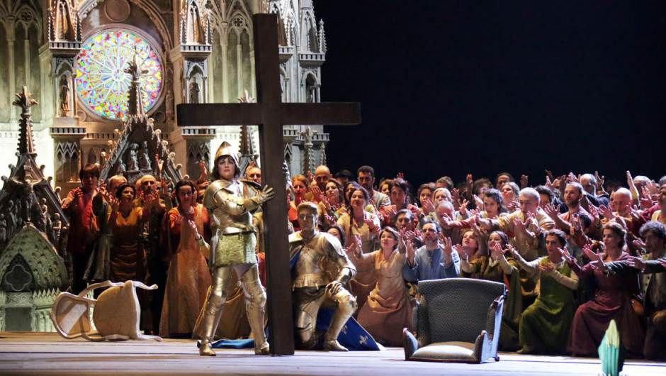 A pesar de las críticas procedentes de algunos sectores, nunca contentos con nada fuera de lo que ellos consideran lo selecto y “de nivel”, resultó completamente adecuada la elección de la ópera Giovanna D’Arco de Verdi para la inauguración de la presente temporada del Teatro alla Scala. La obra llevaba desde 1865 ausente del templo milanés, donde se había estrenado en 1845 constituyendo una de las siete óperas verdianas estrenadas en la Sala Piermarini. El propio maestro expresó en su día que era “la mejor de sus obras” y eso que ya había estrenado previamente Nabucco y Ernani. Por si fuera poco, Riccardo Chailly, actual director musical titular, la considera una creación de gran valía, que merece mucha más presencia en los teatros, ya que anticipa, en su opinión, que comparte quien firma estas líneas, todo el Verdi posterior. Por si fuera poco, el papel protagonista, que fue escrito para toda una diva de la época (Erminia Frezzolini, amiga personal de Verdi), se asignó a la gran diva del momento, la rusa Anna Netrebko.
