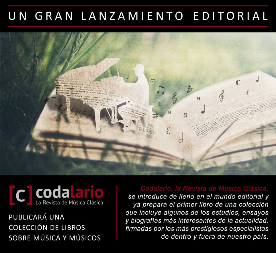 CODALARIO prepara un gran lanzamiento editorial: una colección de libros sobre música y músicos, que incluye algunos de los estudios, ensayos y biografías más interesantes de la actualidad, firmados por los más prestigiosos especialistas de dentro y fuera de nuestro país. De esta forma, CODALARIO, LA REVISTA DE MÚSICA CLÁSICA se introduce de lleno en el mundo editorial y añade la publicación bibliográfica a su amplia oferta de marca, que incluye la impresión anual de su Anuario. Próximamente daremos a conocer el primero de los títulos de la colección.