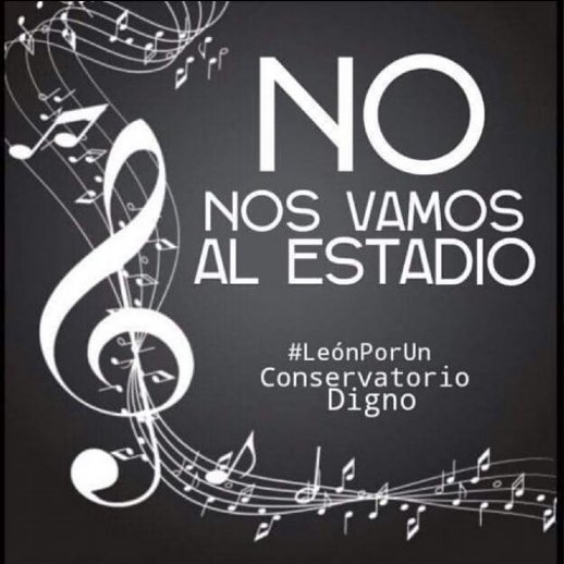 Profesores, padres y alumnos del Conservatorio de León se manifestarán el próximo jueves 21 de abril a las 20:30 horas para evitar que la Junta y el Ayuntamiento de León trasladeN el Conservatorio al campo de fútbol de la ciudad. La concrentración ha sido convocada, según El Diario de León, por la Junta de Personal Docente del Conservatorio de León. La protesta saldrá de la sede del actual conservatorio a la citada hora, y se trasladará a Botines, donde se ofrecerá un concierto protesta protagonizado por los alumnos del centro. La organización ha diseñado un cartel y habilitado el siguiente hasftag: #LeónPorUnConservatorioDigno.
