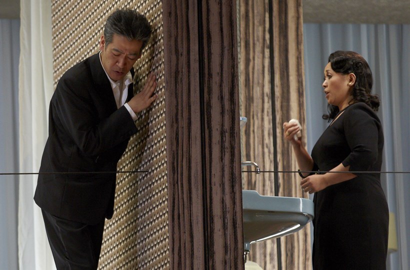 La clásica solución de seccionar una casa para que veamos lo que sucede al mismo tiempo en sus distintos espacios (salones, dormitorios, cuartos de baño, escaleras, vestíbulo…) es la clave de esta propuesta escénica de Yannis Houvardas para el Così fan tutte mozartiano que estrenara la Ópera de Stuttgart hace ahora dos años. Una casa cuyo setentero mobiliario, así como el atuendo de los personajes, nos retrotraía a décadas pasadas de una manera bastante similar a como lo hicieran los primeros capítulos de la nuestra televisiva serie Cuéntame. Evidentemente la eficacia y atractivo de esta idea, pese a no ser nada innovadora, están ahí: vemos cómo se disfrazan Ferrando y Guglielmo tras la apuesta, de la misma manera que Despina y Don Alfonso están continuamente husmeando todo lo que concierne a los protagonistas. Y por supuesto, asistimos al cortejo de las parejas intercambiadas pese a que la maravillosa obra de Mozart y Da Ponte traiga lógicamente a unos u otros a un primer plano de atención. Una producción así requiere, como es el caso, de una contundente dirección de actores pues los personajes están prácticamente siempre en escena; y si además viene salpicada aquí y allá de detalles de buen humor y, por qué no, de un acertado erotismo por otra parte inherente al propio libreto y música, los resultados son inevitablemente satisfactorios.