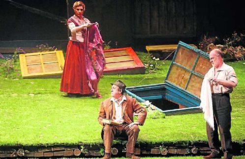Lo más interesante del tercer título de la Temporada de Zarzuela de Oviedo ha sido el nivel lírico del reparto masculino, la actuación del genial Luis Varela y la propuesta escénica, un trabajo de Amelia Ochandiano que, sin llegar a convencer del todo en su concepto, estuvo llena de soluciones inteligentes y un evidente buen gusto estético. Puede que recordando a la famosa película española "Amanece, que no es poco" , la directora convierte la conocida zarzuela "La del Soto del Parral" de Soutullo y Vert, en una especie de comedia rural con ligeros tintes surrealistas. De esta forma, coloca las puertas en el suelo, incluso supliendo el ramaje de un árbol, e incluye un campanario colgado de lo que parece una especie de gran depósito en el que, a su vez, pone a un santo en su hornacina. Al igual que en la película de José Luis Cuerda, donde los hombres crecían del suelo, Ochandiano también incluye personas saliendo del firme, pero al revés, en una simpática coreografía de piernas. Otro de los aspectos más llamativos fue el movimiento escénico, lleno de pequeños gestos que, en manos de las mujeres del coro, acompañaron las escenas de una saludable comicidad. Algún recurso resultó algo forzado pero, en general, el trabajo resultó atractivo, e incluso sorprendió al público al incluir lluvia durante alguna escena. Alejandro Roy estuvo espléndido, gracias a una voz que da envidia oír por su belleza y volumen. Actuando sigue faltándole soltura, pero su participación estuvo a la altura de los mejores teatros del mundo, en los que, con demasiada frecuencia, encontramos tenores que no le llegan ni a la suela del zapato. Algo parecido sucede con Juan Jesús Rodríguez, un barítono de enorme talento, cantando y actuando. Rodríguez es, además, un artista de gran carácter, un aspecto nada fácil de encontrar y que, por ejemplo, echamos de menos en el trabajo de dirección musical de Rubén Gimeno quien, mientras le acompañaba, parecía seguir la perspectiva artística del cantante en lugar de al revés. El trabajo de Luis Varela hay que ponerlo aparte. Hemos dicho en muchas ocasiones que se trata de uno de nuestros actores más geniales. El Tío Prudencio no es un papel que aproveche todo su potencial cómico, pero cada una de sus intervenciones fue un plato delicioso que el público saboreó relamiéndose en su talento. María Rodríguez fue una Aurora solvente, a la que resultaba difícil entender sin mirar los sobretítulos. Aurora Frías fue una Catalina correcta. Didier Otaola y Luis Álvarez, otra institución dentro del género, realizaron un trabajo notable en sus respectivos papeles. La dirección orquestal de Rubén Gimeno resultó un tanto descuidada. Gimeno no fue más allá de la corrección, mostrándose como un director excesivamente relajado, que modeló con poca firmeza la sonoridad de la Oviedo Filarmonía a pesar de su ostentosa gestualidad, y que acompañó a los cantantes con excesiva laxitud. El Coro Capilla Polifónica Ciudad de Oviedo tuvo una participación lírica correcta. En escena, el conjunto resultó otro de los alicientes de la producción.