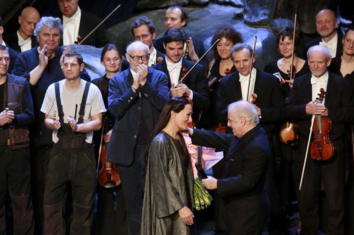 Lo decía Barenboim, tomando la palabra al acabar la representación, tras entregarle Jürgen Flimm a Meier el título que la acredita como miembro de honor de la Staatsoper de Berlín: “Waltraud no interpreta Isolda, no canta Isolda: es Isolda”. Y no, no es una hipérbole. Pocos casos recordaremos de una identificación tan nítida y acabada entre un personaje y su intérprete. No en vano, en su caso, han sido aproximadamente veinticinco años con el papel a sus espaldas, como deja entrever esa capacidad innata para fundir texto y emisión, para expresar con todo el cuerpo, con el gesto lo mismo que que con esa mirada hipnótica, cargada de un magnetismo inimitable. Como si Isolda se hubiese apoderado de su cuerpo y habitase en su voz, en una memorable rendición del Liebestod las palabras de Barenboim antes referidas cobraron más sentido que nunca, con una Meier como transida y ajena a todo, fundida con Isolda, irradiando algo inefable, como llevada por las alas de ese gigantesco ángel caído que presidía la escena de principio a fin. Apostamos a que Meier inundó la sala del Schiller Theater de lágrimas, habida cuenta de la espontánea ovación, con toda la platea en pie, que recibió nada más aparecer ante el telón.