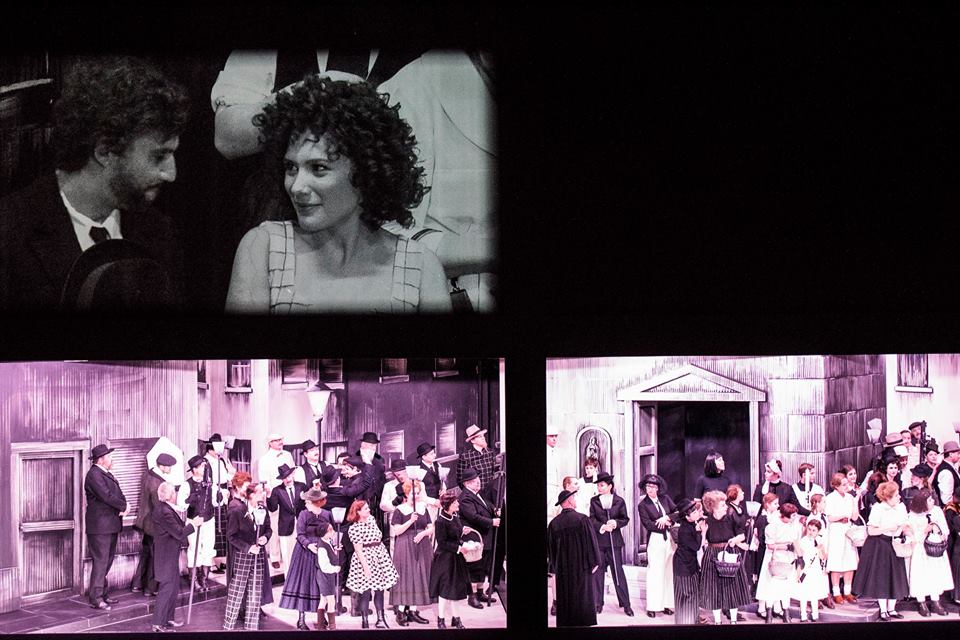 La nueva producción de Philipp Stölzl fracasa sobre todo por no ajustarse al gran espacio del Grosses Festspielhaus de Salzburgo, que dispone de un escenario singularmente ancho y alargado, y que sin embargo el regista decide dividir en seis pequeños casetones en los que sucesivamente va transcurriendo la acción. El resultado es que ese gran espacio se ve reducido a apenas unos metros, perjudicando la acústica y la visibilidad a partes iguales, y sin añadir ciertamente nada a la acción propiamente dicha, obligando más bien a los cantantes a esforzarse una y otra vez con las limitadas dimensiones de la escenografía. La producción resulta así demasiado compleja en su resolución para lo poco que realmente aporta en términos de dramaturgia, quedando como mucho como un atractivo viraje estético, más allá de las representaciones más clásicas y tradicionales que a menudo acompañan a estos títulos de Mascagni y Leoncavallo. En esta ocasión la caracterización de los personajes es estupenda, el vestuario está muy logrado y todo el código estético a medio camino entre el cómic y el cine clásico y con guiños a la obra de Otto Nückel que arma la escenografía resulta igualmente atractivo, pero no hay nada más allá de todo ese escaparate. Y todos los guiños apreciables de la producción de Stölzl se quedan en anécdotas que no conducen a ninguna parte. Como sucede con el hecho de que Cavalleria rusticana se desarrolle en blanco y negro, mientras que Pagliacci se representa en color. ¿Por qué? ¿Para qué? Nadie lo sabe. Mamma Lucia es una suerte de capo mafioso. ¿De qué? ¿Para qué? Nadie lo sabe. Turiddu y Santuzza tienen un hijo de varios años de edad que pulula también por el escenario. ¿Qué nos aporta esto? Realmente nada, y es una anécdota que resume perfectamente la vacuidad dramática de la, por otro lado, atractiva propuesta estética de Stölzl. Para colmo de males, la acción se refuerza con el recurso constante a la realización en vídeo, que no hace otra cosa que duplicar, en otro de esos citados casetones, lo que ya estamos viendo en alguno de los otros. Redundante a todas luces.
