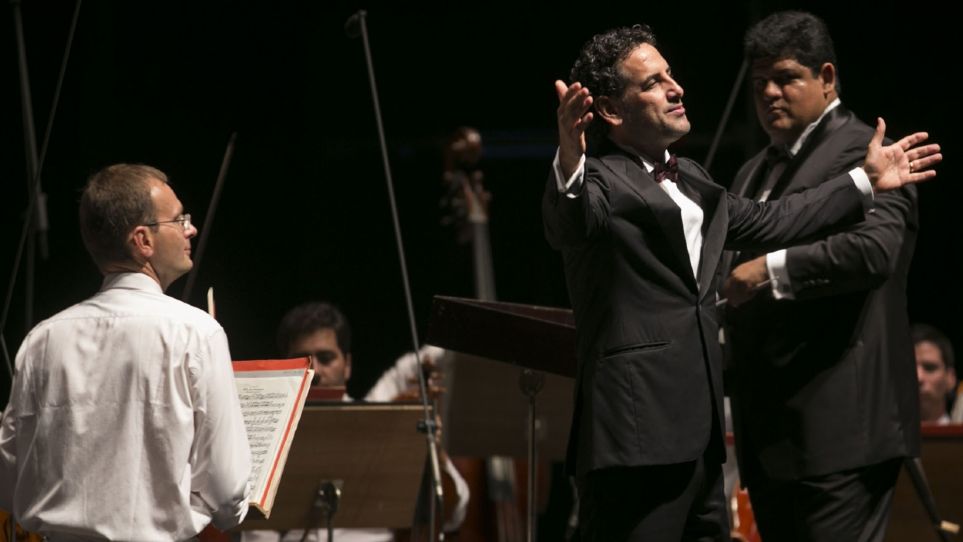 Con un ambiente caldeado y en recuerdo de la célebre Teresa Berganza en el palco de honor del Festival, Flórez salió guitarra en mano, y por un momento, sin orquesta y solo su voz y guitarra, cantó en honor a la grandísima, una “Malagueña salerosa” llena de emotividad y virtuosismo en los famosos falsetes con los que se suele adornar esta canción universal que bordó con naturalidad y entusiasmo causando el delirio del público. Generoso y espoleado en cada salida a saludar el divo regaló una exultante “La donna e móbile”, una preciosista “Je veux encore entendre ta voix”, del Jérusalem de Verdi, para acabar en honor de multitudes con una “Furtiva lagrima” donde demostró por qué es un maestro absoluto del belcantismo italiano. Flórez triunfó, encandiló y sedujo, pero también quedó en el aire la sensación de un artista ensimismado en la belleza de su canto, cual narciso canoro, recreado en la belleza de un fraseo apolíneo pero que puede llegar a rayar cierto amaneramiento por su laxitud con el tempo, más que a su servicio en este caso, quizás por la falta de ensayos con la orquesta. El director Espartaco Lavalle dirigió de manera sonora y algo convencional las piezas orquestales que intercalaban el recital para que Flórez descansase. Cual flor de belleza delicada y frágil, que se cuida y enseña tapada con un receptáculo de cristal, así pareció la labor de la orquesta. Suerte que Juan Diego Flórez no necesita demostrar a estas alturas nada, es un fuera de serie, y si hay pocos ensayos con orquesta, su voz y maestría suplen con creces el resto… cosas de divos.