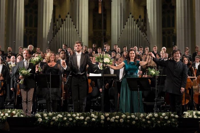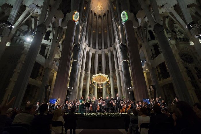 Barcelona. 20/08/2015. Sagrada Familia. Obras de Vivancos, Takemitsu, Mozart y Fauré. Eugenia Boix (soprano), Marta Hinojosa (soprano), Josep Ramón Olivé (barítono). Orquesta Sinfónica de Barcelona y Nacional de Cataluña. Coro Joven del Orfeón Catalán. Coro Madrigal. Dirección musical: Kazushi Ono.