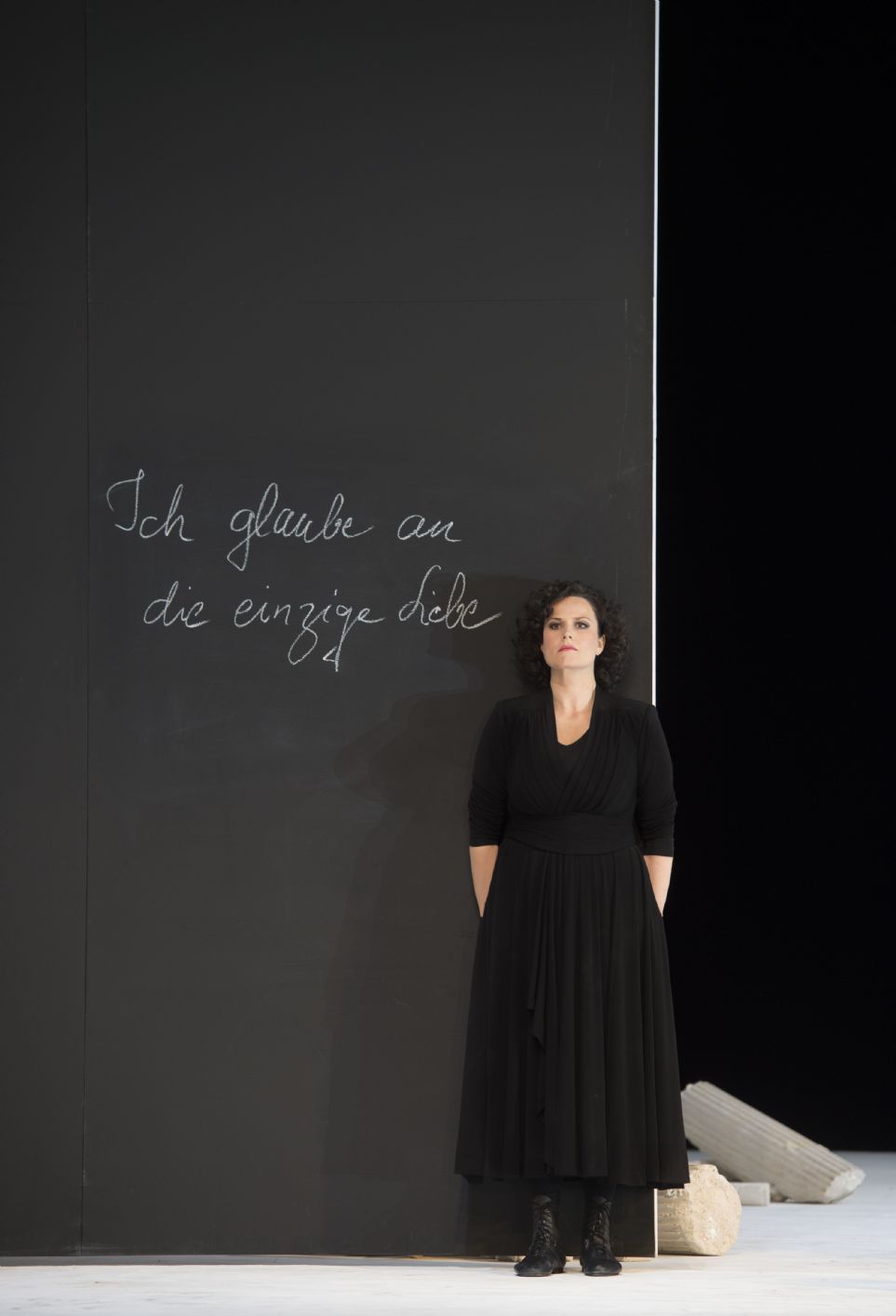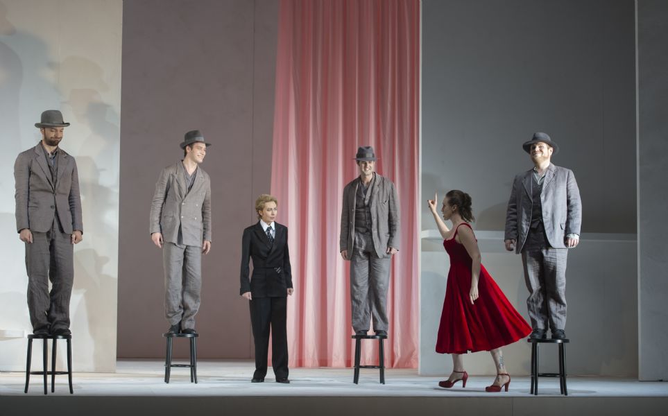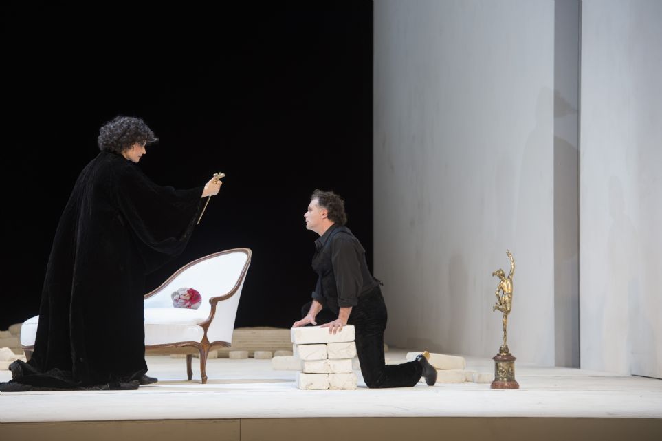 Estrenaba la Staatsoper de Berlín una nueva producción de Ariadne auf Naxos, una partitura a decir verdad no demasiado presente en su historia. Para la ocasión, en su primera aproximación a esta obra, el trabajo del veterano y polémico Hans Neuenfels, nacido en 1941, es de una elegancia y sencillez que admiran. Como si cansado de epatar con algunas banalidades y otros muchos aciertos, no seamos injustos, hubiera decidido el afamado director volver a beber de las fuentes originales, revisitando el teatro clásico, con una raigambre intelectual bien entendida, repartiendo juego hábilmente entre la tragedia y la comedia. Partiendo de una caja en blanco despliega una reflexión sobre el amor y la muerte plagada de buen gusto y de pequeños detalles, con una hermosa estética a cargo de Katrin Lea Tag, con vestuario de Andrea Schmidt-Futterer e iluminación de Stefan Bolliger.