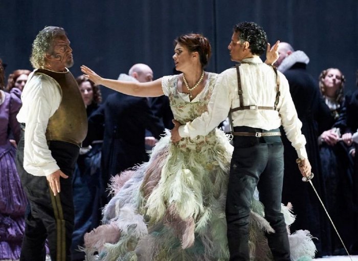 Tras casi siglo y medio de ausencia, la última vez fue en 1870, el Otello de Rossini regresaba a la Scala de Milán en una nueva producción a cargo de Jürgen Flimm y con el protagonismo de Gregory Kunde, junto a Juan Diego Flórez y Olga Peretyatko. Ópera poco frecuente, requiere un plantel vocal exigente, con tres tenores de primera fila y una soprano muy capaz. En esta ocasión se ha contado con un equipo vocal de gran solvencia, si bien ni la dirección musical ni sobre todo la nueva producción han estado a la altura. Como decíamos, la dirección de escena corría a cargo de Jürgen Flimm, a la sazón intendente de la Staatsoper de Berlín, teatro con el que se coproducía este trabajo. El resultado oscila entre una nada decepcionante y una modesta funcionalidad, aderezada con unas cuantas ocurrencias que no llevan a ninguna parte. La sensación general es que Flimm no sabe muy bien que hacer con esta partitura, con un libreto que no termina de interesarle y ante el que reacciona con desconcierto, casi con improvisación. Es muy elocuente en este sentido todo el tercer acto, con una gran góndola que no cuadra en modo alguno con el trabajo expuesto en los dos actos precedentes y con una sucesión de recursos para la escena final que simplemente no funcionan, cuando cae todo el armazón, el montaje que sostiene la “escenografía”, como dando a entender que Otello descubre la farsa de la que ha sido presa. Demasiado rebuscado y demasiado evidente al mismo tiempo. Para ese viaje no hacían falta alforjas. Amén de una dirección de actores para olvidar nos sobraron las infinitas y ruidosas sillas, el molesto suelo de arena, regado arbitrariamente por dos figurantes, amen de esa pizarra que Emilia trae y lleva, con tres supuestos conceptos claves de la representación: “infida, errore, gelosia”. Para colmo de males se indica en el programa de mano que el trabajo de Flimm parte ni más ni menos que de una idea de Anselm Kiefer, sin que se nos concrete nada más al respecto (¿cuál es esa idea? ¿cómo la ha elaborado Flimm?). Si dos autoridades de la talla de Flimm y Kiefer sólo pueden dar lugar a una producción así, es que algo no funciona.