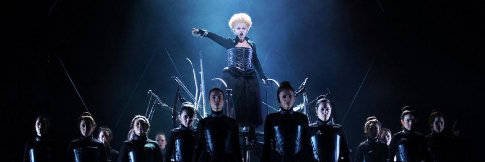 Toda esa oscuridad interior que sin duda desolaba a Donizetti parece haber sido el leitmotiv de esta producción de la Welsh National Opera de Cardiff, que podrá verse en Madrid hasta el 8 de octubre. Me pregunto por qué el Teatro Real, que debe al menos aspirar a situarse en la primera fila de los escenarios operísticos, se permite inaugurar una temporada lírica con una escenografía alquilada, máxime cuando, como es el caso, no guarda ningún valor artístico, ni siquiera el menor revulsivo o reflexión. La escena presentada por el equipo de Alessandro Talevi es de aquellas escena-chispa. Esto es, tengo una idea para cinco minutos de la obra y de ella desarrollo las otras dos horas de duración, encaje o no encaje, interese o no. En la ópera hace falta crear algo más allá del mero chispazo, en la ópera hay que hacer fuego y no dejar de arder hasta que cae el telón. La idea de Talevi, presentar a Elisabetta como una viuda negra (justo en una obra en la que aflora y vence su lado humano…), con un trono en forma de araña que crea un escena llamativa cuando la reina finalmente condena a muerte a su amado Devereux. La cuestión es que todo lo demás pasa sin pena ni gloria en una escenografía de Madeleine Boyd, pensada para otra caja escénica, abrumadoramente aburrida, muy oscura y pretendidamente tétrica pero que no termina sino siendo de una simpleza preocupante, con juego de pelucas en la reina para resaltar su desmoronamiento personal ya demasiado visto. Por su parte, la dirección de escena de Talevi es nula. Los movimientos y ademanes de los personajes huelen a vieja escuela, resultan estáticos y como palmadita en la espalda de la pseudo-provocación presenciamos como el Duque de Nottingham viola a su esposa. He ahí la genialidad de Talevi.