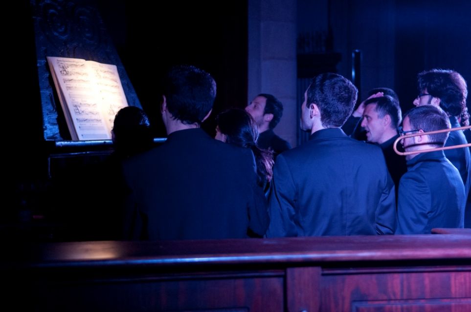 Tras la presentación de Rey dio comienzo el concierto, con la presencia de los ocho miembros de la Capella Prolationum y los cinco de La Danserye –vestidos ahora de riguroso negro para el concierto–. Que estamos antes una –o dos– formación poco habitual –ya no solo en España, sino en todo el mundo– quedó patente desde el minuto uno. El principal aporte de estos dos ensembles radica en la reconstrucción fidedigna de la interpretación musical en algunas capillas del Renacimiento europeo, interpretado su repertorio de la manera más habitual en que solía hacerse por aquel entonces: ora cantando todos de los libros de coro desde el facistol, ora cantando en formación pero cada pequeño grupo de intérpretes de su libreta de partes –las particelle de hoy día–. El segundo gran aporte proviene de la propia formación, por la combinación de los ministriles con la voz en todo momento. Sobre esto cabe mucho debate: ¿doblar siempre cada una de las líneas vocales, utilizar solo una parte instrumental y el resto vocal, una sola línea vocal y el resto instrumental, dividir de manera equitativa las líneas entre ambos…? Las opciones son tan amplias como el desconocimiento exacto que existe de esta práctica. Y todo ello aderezado por la presencia de un director a la antigua usanza –en este caso el bajo Nancho Álvarez–, encargado únicamente de marcar el tactus –el pulso básico de cada obra– con un gesto casi marcial. La Danserye opta por doblar cada una de las partes –salvo que la falta de efectivos no alcance para ello–, lo que en ocasiones dificulta la inteligibilidad de las líneas y termina por apabullar en ciertas piezas en la que se requiere una sonoridad más ajustada.