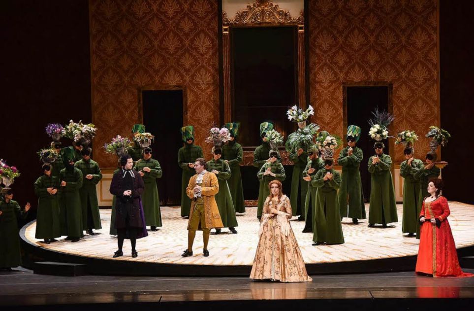 La producción que el Teatro Mariinsky estrenara el pasado año, es ciertamente rancia y ñoña en lo estético y carece de una consistente dirección de actores. Pero no es menos cierto que sigue el libreto con gran fidelidad e incluso permite entender escenas y secuencias que en la mayoría de propuestas, incluso las más tradicionales, son complicadas. En este sentido, destacó el acierto con el que se resuelven las que encierran un componente de “teatro dentro del teatro” (finales del primer y tercer actos) así como desarrollos dramáticos en estancias paralelas (segundo y cuarto).