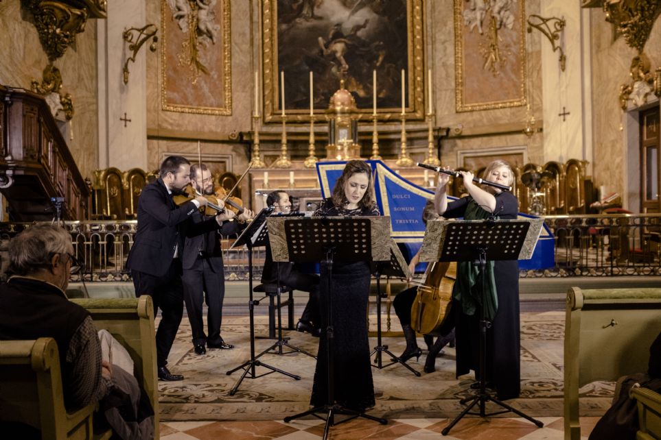 Completaron el programa Escala de la gloria, una Cantada al Santísimo Sacramento con violines firmada por Nebra, que es, dentro de sus grandes ejemplos del género, de las menos conocidas e interpretadas. En ella se observa con meridiana claridad la magnífica, y tan personal, escritura melódica del autor bilbilitano, cuyo desarrollo en el género de la cantada encuentra parangón solo en algunos de los compositores europeos más destacados del momento. Por su parte, Juan Francés de Iribarren (1699-1767), otro de los magníficos autores en la España del XVIII –organista en la Catedral de Salamanca y maestro de capilla en la de Málaga–, estuvo muy bien representado en sendas composiciones: su fascinante «Tocata» de la cantada Prosigue, acorde lira [1740], que compone sobre una de las sonatas del Op. V del genial Arcangelo Corelli, desdoblando la escritura del violín solo en una pareja de violines, con una elegancia superlativa y sabiendo mantener la esencia corelliana de inicio a fin, incluso en la compleja fuga final. Se cerró el programa con Respira sin temor, brillante Cantada a la Purísima Concepción con violines y flauta [1750], majestuosa creación en la que traverso, voz, violines y continuo se engarzan con una sutileza y elegancia realmente magníficas.