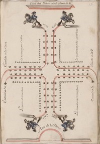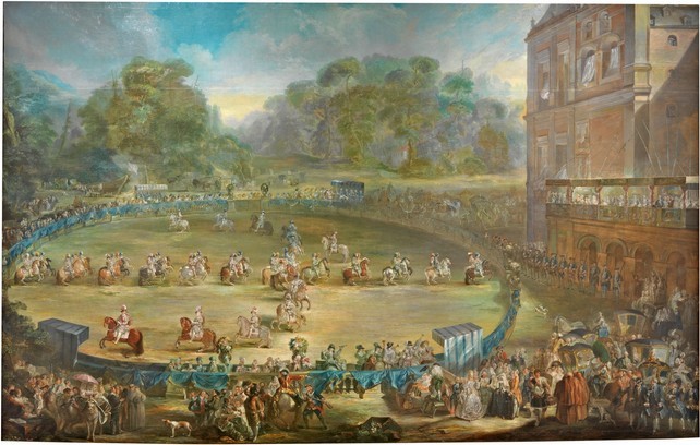 Posiblemente antes, pero con constancia desde 1767, habría quedado establecida la tradición de inaugurar la temporada -llamemos- estival en el Real Sitio de Aranjuez con una fiesta de este tipo, en la que los caballeros, divididos e cuatro cuadrillas con diferentes atavíos, lucían sus habilidades ecuestres.