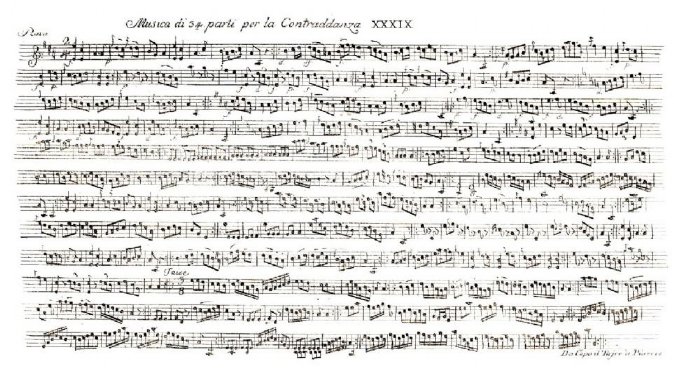 Además de la notación coreográfica, el tratado incluye la partitura musical, que consta de varias marchas en compás binario seguidas de otras denominadas “Taice” en 3/8, que coincide con la estructura de la música del quinteto de Boccherini antes indicado y, como veremos más adelante, con las del manuscrito de Rossi y las del manuscrito de Brunetti.
