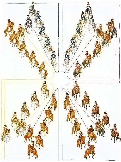 Aquellos ballets ecuestres del siglo anterior habían gozado de la misma evolución que la Danza cortesana, por lo que se habían convertido en una especie de suite de contradanzas con su formato específico adaptado a la exhibición en el exterior, y a las peculares características de sus intérpretes, tanto en volumen como en número y espacio disponible.