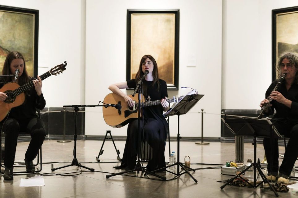 Una vez dentro, el público era dividido en tres grupos [A, B y C] para rotar entre las salas. Es decir, cada artista interpretaba tres veces el mismo repertorio para tres públicos diferentes que veían los tres conciertos pasando por las tres salas. En fin, una fantasía triádica que hubiera sido aún más perfecta si hubiéramos podido admirar La Trinidad de El Greco, pero por culpa de unas peanas –malhayas ellas– no pudo ser, así que nos llevaron frente a Los comuneros de Castilla, que también eran tres. Con ellos a la espalda y de frente el Fusilamiento de Torrijos del mismo Antonio Gisbert, comenzó el que para mí fue el primero de los conciertos: el de Rosa Torres-Pardo y María Toledo. Un recitado de Lorca nos ponía ya en situación de que iba a haber más Lorca que Falla, más alumno que maestro, pero es que los mártires siempre tienen más morbo, y si no, que se lo digan a Bravo, Padilla, Maldonado y Torrijos, que allí estaban mirando.