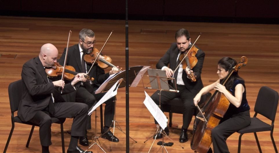 La segunda parte, aunque no hubo descanso para el público, puso el foco en los intérpretes. Al escoger un repertorio más habitual en los circuitos de música contemporánea –o que al menos no admite discusión en cuanto a la composición pues ya la tuvo en su momento–, el ojo crítico se desplazó hacia los músicos. El Cuarteto Quiroga que a base de esfuerzo y un interés consumado por la grabación y difusión del repertorio de los siglos XX y XXI se ha convertido en todo un referente en esta área. Se esperaba que diese un gran concierto y así lo hizo. Poggio y Josep Puchades –violonchelo y viola– tocaron con cuerpo y potencia, mientras que los violinistas Aitor Hevia y Cibrán Sierra interpretaron, en general, con mayor delicadeza, cuidado en la línea y flexibilidad. Claro que, en momentos como el segundo movimiento del Cuarteto de cuerda de Berg, Sierra se llegó incluso a levantar de la silla en varias ocasiones para acompañar el movimiento del arco con toda la potencia del resto del cuerpo.