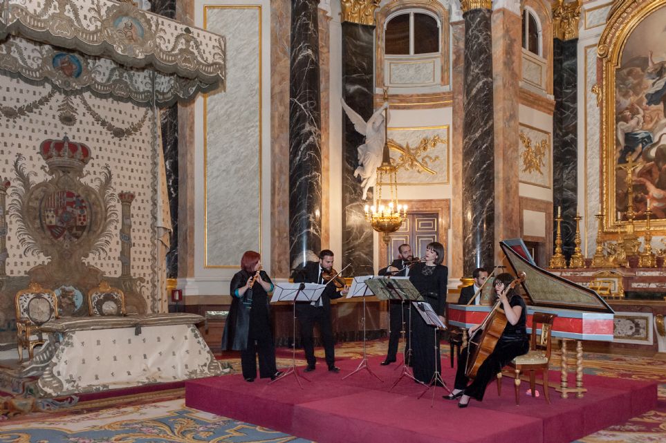 Por su parte, el núcleo del conjunto instrumental fue el habitual, con el añadido de Roldán Bernabé como segundo violín, cuando así se requiere, como en este programa. El trabajo de los violines, comandados por Víctor Martínez, es absolutamente ejemplar. Pocas veces se escucha un trabajo de unísono tan pulido, siendo realmente difícil discernir que hay dos instrumentos tocando la misma línea. Por otra parte, cuando las líneas se dividen, el resultado dialógico entre ambos está tan cuidadosamente labrado, que los pasajes imitativos o los enlaces entre uno y otro son pura artesanía violinística. Además, Martínez es, sin ningún género de dudas, uno de los mejores exponentes que tenemos en el violín histórico en nuestro país actualmente. Su afinación, la solvencia técnica –realmente apabullante en muchos momentos–, las articulaciones absolutamente diáfanas y su capacidad para impactar a través de su línea son un lujo auditivo. No menos halagos se le pueden brindar a Laura Quesada, que continúa paso a paso afianzándose como una de las traversistas de mayor impacto en el panorama, no ya solo español, sino internacional. Quesada posee prácticamente todo lo que necesita un intérprete para ser grande, y además una musicalidad absolutamente arrebatadora. Si se dedicara al flamenco, dirían de ella que tiene duende. Sea cual sea la analogía con el repertorio barroco, ella la posee. No es solo una excepcional solista –todavía están resonando en la Capilla Real ecos de su versión del concierto de Giordani–, sino que es capaz de plegarse a las exigencias del trabajo en equipo, despareciendo del escenario cuando es necesario y convirtiéndose en una acompañante de lujo cuando así se requiere –algunos momentos de diálogo entre ella, la voz de Caihuela y los violines quedarán largo tiempo en el recuerdo de los asistentes–.