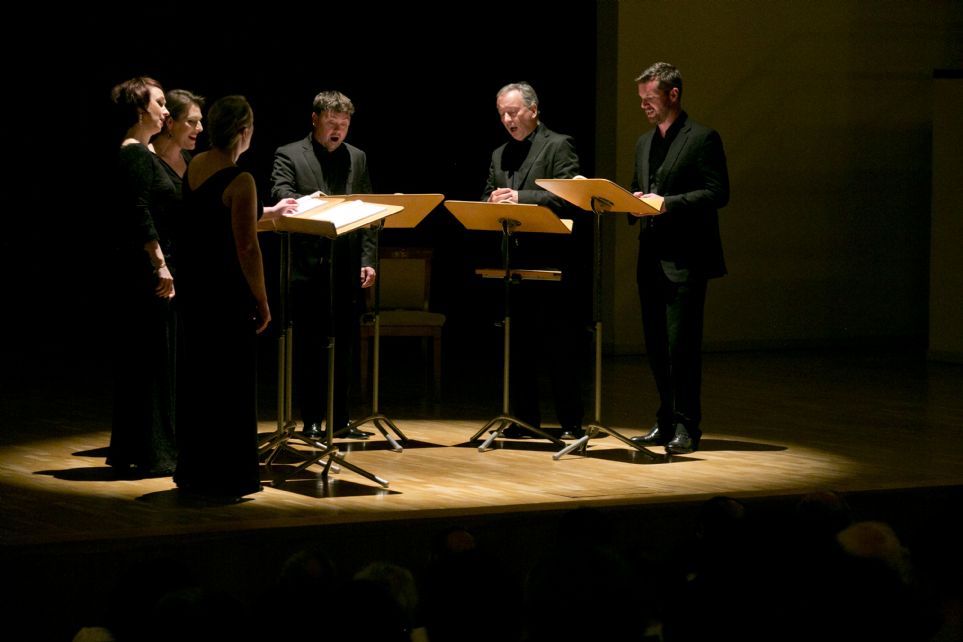 Pocos peros se le puede poner a la selección de cantores llevada a cabo por Agnew. Miriam Allan y Hannah Morrison son dos magníficas sopranos, aunque presentan a veces timbres notablemente distintos; se mueven en el registro agudo con solvencia, aunque Allan con un leve punto de estridencia cuando su línea se vuelve más protagonista, que sin embargo se torna bien equilibrado en los pasajes más contrapuntísticos. A pesar de ser cantantes distintas, en los dúos –cuando los madrigales exigen dos sopranos– se adaptan de forma magistral la una a la otra, incluso en el aspecto tímbrico, lo que es siempre muy interesante cuando se desarrollan elementos imitativos en la escritura vocal. Por su parte, Sean Clayton y el propio Agnew sostienen de forma elegante y muy noble las líneas de tenor, que son base fundamental en el contrapunto de Gesualdo, dado que Agnew suele estandarizar la escritura a 5 de Gesualdo –todos sus madrigales, en distintas variantes, están concebidos para cinco partes– de tal forma que suele bajar la afinación –transportando las claves altas originales– para que de la plantilla original [SSATB] dé como resultado la que él prefiere para sus interpretaciones [SATTB]. Ambos poseen un timbre típicamente británico, argénteo en el agudo y de gran cuerpo en la zona central, adaptándose muy bien además los dos a sus respectivos roles. Por su parte, el bajo Edward Grint es el verdadero sustento armónico y sonoro del conjunto, sobre el que se erige toda la construcción polifónica de Gesualdo, armado con un registro grave poderoso y gran carnosidad tímbrica, exhibiendo además una amplia extensión vocal y una delicada y muy elegante línea de canto. Únicamente él y la excepcional alto Lucile Richardot cantaron todas y cada una de las piezas del concierto. Mención especial merece esta cantante, sin duda una de las voces más extraordinarias del panorama mundial actual de la música antigua. Aporta un color, un refinamiento, una presencia siempre tan certera y una inteligencia musical tan magnífica, que pocas veces puede escuchar con tal nitidez la que es probablemente la línea más compleja en este tipo de composiciones: el altus.