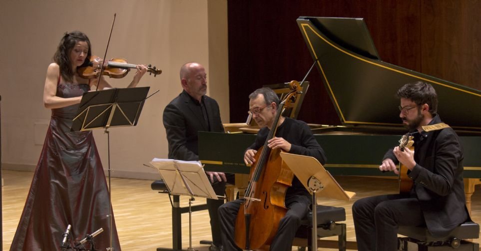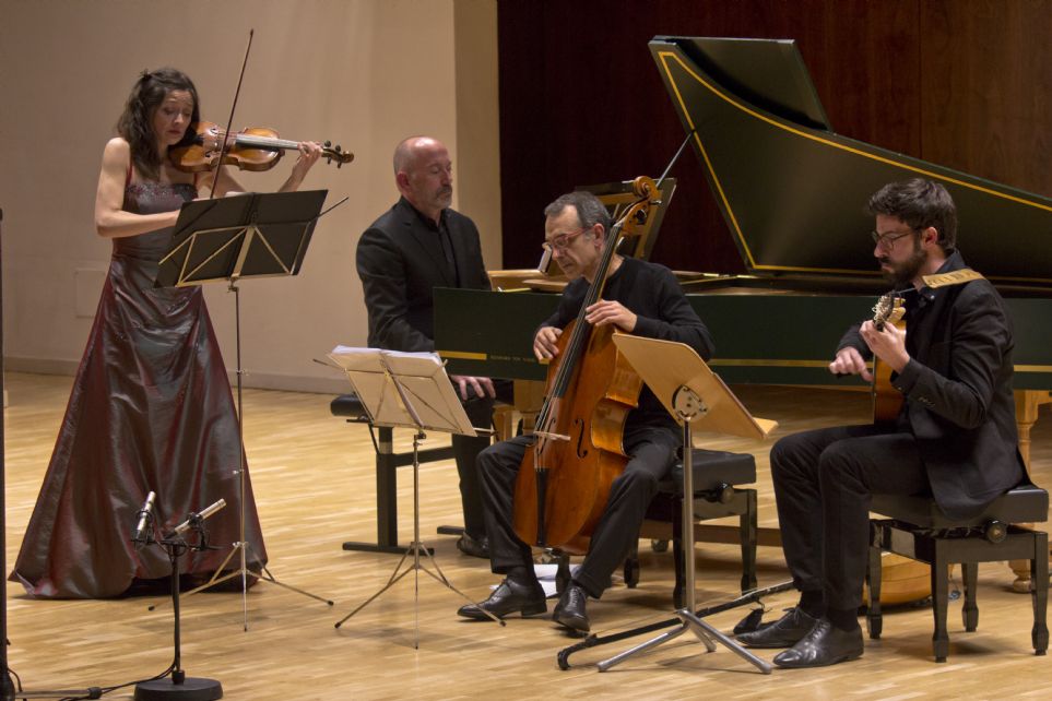 Estuvo bien arropada por un trío de continuistas de notable calidad, comenzando por el violonchelista Marco Testori, de pulcro sonido, una solvencia técnica fuera de dudas y una capacidad realmente loable para aportar diferentes colores en los momentos apropiados. En los Fandangos anónimos hizo uso, además, de su instrumento de diversas formas, aportando un pizzicato muy efectivo y especialmente un uso percutivo de la caja de resonancia, que más allá de extraer una sonrisa al respetable, logró aportar aporte tímbrico y rítmico de notable efecto. Por su parte, Kenneth Weiss, uno de los clavecinistas predilectos par Tur Bonet, ofreció unas lecturas muy interesantes desde el clave, plegándose al conjunto con un continuo imaginativo, pero sin extravagancias, bien resuelto y muy equilibrado en cuanto a su presencia, incluso manteniéndose ausente en ciertos momentos que requerían de una textura más diáfana. Fantástico siempre resulta el concurso de Josep Maria Martí a la cuerda pulsada [guitarra barroca y tiorba], por más que en ciertos momentos –Brunetti, por ejemplo– el rasgueo de la guitarra parecía no irle especialmente a esa música. Aun con ello, aportó un continuo brillante, muy luminoso, siempre colorista, muy inteligente y, sobre todo, espectacularmente sonoro.