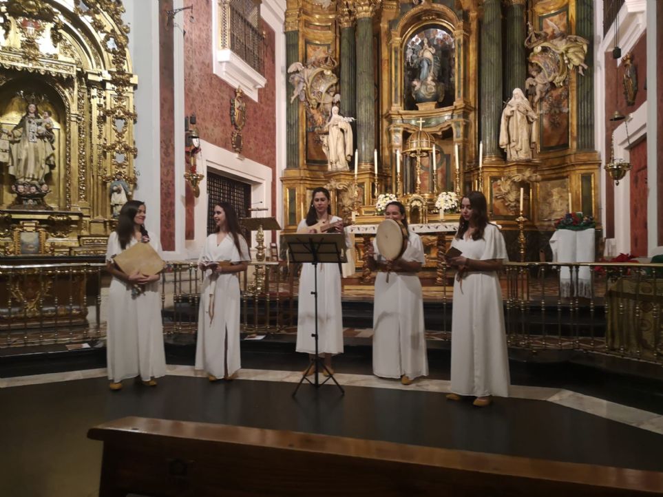 Madrid, 18-XII-2021, Iglesia de las Mercedarias Descalzas de la Purísima Concepción. Aeterna Musica. Iacobus Yspanias. Obras anónimas, de Benedict of Peterborough, Perotin, Alfonso X «el Sabio», Guillelmo patriarcha Iherosimilitano, Ato episcopus Trecensis, Fulbertus episcopus Karnotensis, Magister Albericus archiepiscopus Bituricensis y Aimericus Picaudi. EGERIA: Lucía Martín-Maestro [voz, percusión y dirección artística], Fabiana Sans [voz, percusión y codirección artística], Romina de la Fuente [voz], Laia Blasco [voz], María de Mingo [cítola].