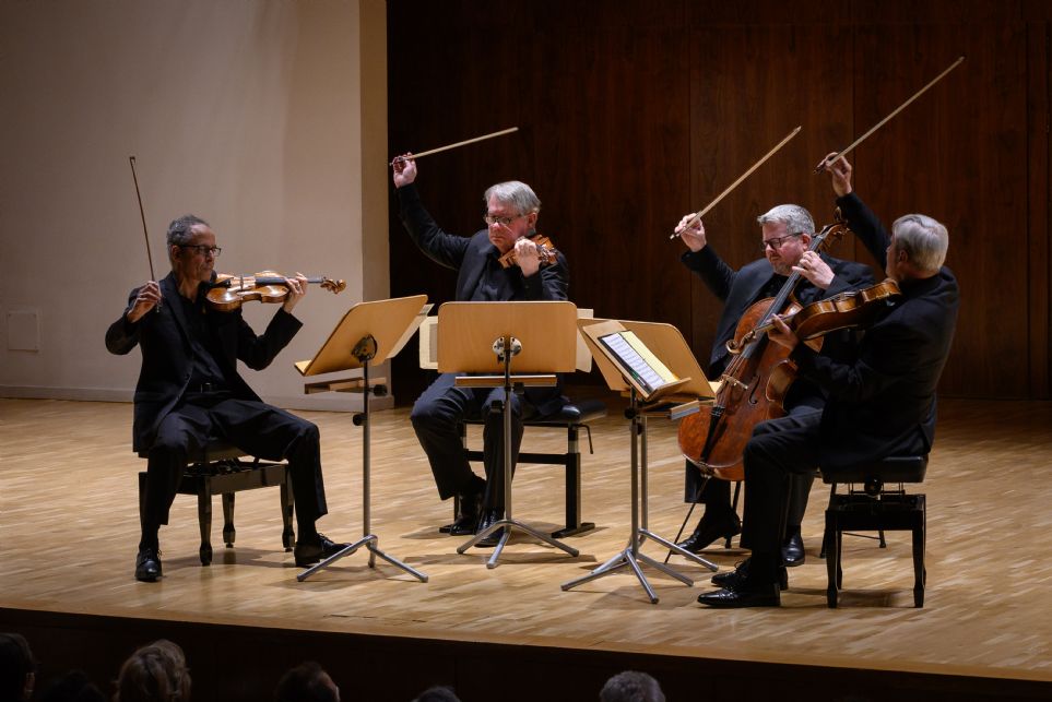 Madrid, 10-III-2022, Auditorio Nacional de Música. Liceo de Cámara XXI, Centro Nacional de Difusón Musical. Cuarteto de cuerda n.º 14 en do sostenido menor, Op. 131 de Ludwig van Beethoven y Cuarteto de cuerda n.º 14 en re menor «La muerte y la doncella», D 810 de F. Schubert. Cuarteto Emerson: Eugene Drucker, Philip Setzer [violines], Lawrence Dutton [viola], Paul Watkins [violonchelo].