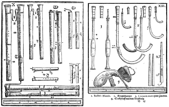 Dicho lo cual, la penúltima cita de uno de los ciclos estrella del CNDM, con la que se cerraba su presencia en la sala de cámara del Auditorio Nacional de Música –a falta del último concierto de su temporada, programado en la sinfónica–, logro al fin esa extraña sensación de enganchar al oyente por medio de la sorpresa. No era una apuesta arriesgada la del conjunto invitado, au contrarie, pues se trata de uno de los ensembles más legendarios de entre los que se dedican a la interpretación de la música temprana, Il Giardino Armonico [IGA], ensemble italiano fundado en Milano por su director, el flautista Giovanni Antonini. Lo que sí suponía una innovación importante, por lo que poco habitual en estos lares, era la formación con la que el conjunto acudía a esta cita, una auténtica banda de vientos renacentistas conformada por seis multinstrumentistas que presentaron un catálogo fascinante de instrumentos de lengüeta, bisel y boquilla: flauta de pico, traverso renacentista, cornetto, cromorno, chirimía, bombarda, bajón, bajoncillo y sacabuche [véanse en las imágenes algunos ejemplos plasmados en el apéndice Teatrum Instrumentorum (Wolfenbüttel, 1620), del libro II de Syntagma Musicum de Michael Preatorius], además de un órgano positivo –instrumento tan ligado, por otro lado, al viento–. Y debo admitir mi sorpresa ante la asistencia importante de público –que en algunos de los últimos conciertos estaba flaqueando–, si bien el nombre del conjunto atrae mucho, el repertorio desde luego no resulta un reclamo comercial potente. Pero ahí estaba, y a fe de las ovaciones al finalizar el concierto, se diría que el «respetable» disfrutó de la velada, algo que –vuelvo a tener que admitir– nunca hubiera imaginado. Quizá quede algo de esperanza…