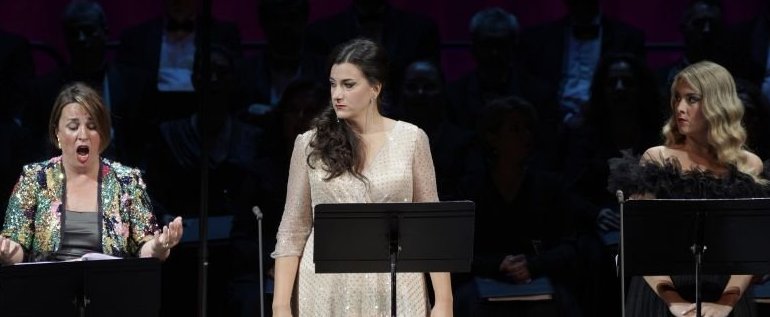 Madrid, 9-IX-2022, Teatro de la Zarzuela. La Celestina (Felipe Pedrell). Maite Beaumont (Celestina), Andeka Gorrotxategui (Calisto), Miren Urbieta-Vega (Melibea), Juan Jesús Rodríguez (Sempronio), Simón Orfila (Parmeno), Sofía Esparza (Lucrecia), Lucia Tavira (Elicia), Gemma Coma-Alabert (Areúsa), Javier Castañeda (Pleberio), Mar Esteve (Tristán), Isaac Galán (Sosia), Coro Titular del Teatro de la Zarzuela. Orquesta de la Comunidad de Madrid. Dirección musical: Guillermo García Calvo. Versión concierto.