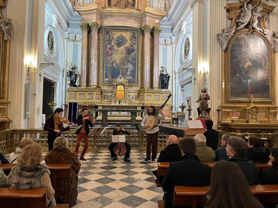 Madrid, 4-II-2023, Fundación Juan March. Ciclo El orbe musical de la Monarquía Hispánica. Violines de la Italia española. Obras de Cesare Negri, Giovanni Paolo Cima, Pietro Andrea Ziani, Andrea Falconieri, Diego Ortiz, Francesco Turini, Tomás Luis de Victoria, Agostino Guerrieri y Carlo Ambrogio Lonati. La Vaghezza: Ignacio Ramal y Mayah Kadish [violines barrocos], Anastasia Baviera [violonchelo barroco], Gianluca Geremia [tiorba], Marco Crosetto [clave y órgano positivo].