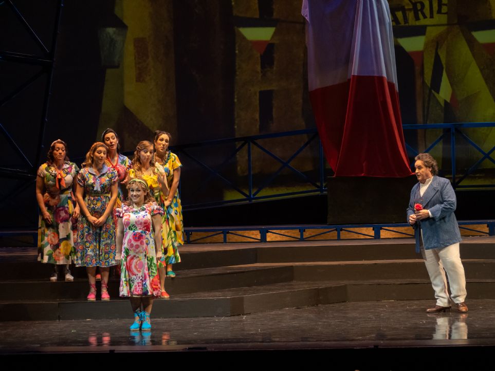 La propuesta de Gas para estos Gavilanes no es tan redonda y evocadora como la de La tabernera. Sobre la escena, la proyección audiovisual de dibujos animados, la escenografía y el vestuario se superpusieron sin encajar del todo con naturalidad, como si a Gas no le hubiese seducido tanto el título o se hubiese conformado con salir del paso con cierta vistosidad ante su falta de redondez dramática. Es una obra difícil Los gavilanes, con momentos preciosos, eso sí, y muy conocidos en lo musical. En su Tabernera, el puerto de mar respiraba de la poética de aquel mágico y cálido cine de verano de Cinema Paradiso. En estos Gavilanes, el lugar provenzal, ya un un tanto lejano en lo geográfico y cultural, se mostró con cierta frialdad, enmarcado en unos grandes andamios que podrían pasar como parte de las tripas del Campoamor. Una escenografía que, por cierto, se usó también para la producción de The Land of Joy.