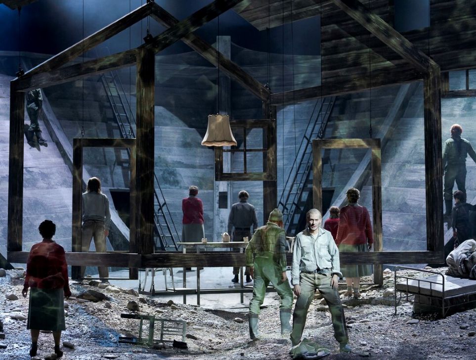 La puesta en escena dirigida por Immo Karaman, de quien recuerdo dos producciones muy atractivas en la Deutsche Oper am Rhein de Düsseldorf –Otra vuelta de tuerca de Britten y El enano de Zemlinsky– lucha con esta falta de movilidad. La escenografía de Rifail Ajdarpasic nos sitúa en el centro de una especie de barca gigante que no para de navegar. Del techo suben y bajan los elementos de la obra: esa puerta que Olai no se atreve a abrir, y la cabaña donde vive Signe y sus alrededores que es donde todo pasa.