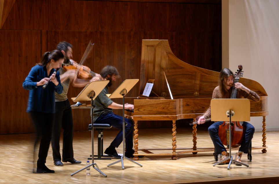 Por último, el Cuarteto en sol mayor, Wq 95 destacó en su realización tan diestra en su escritura repleta de trinos en los instrumentos altos, mientras el clave elaboró los pasajes de arpegios con brillantez. Pharo logró aportar mucha expresividad y color, a pesar de su papel bastante secundario en estas obras. Magnífico balance sonoro, además de un inteligente trabajo de construcción de una forma sonata de largos desarrollos que podría resultar algo tediosa, pero que se hizo «liviana» gracias al trabajo de Nevermind. El Adagio central, en modo menor y de factura un tanto obscura, presenta un papel muy destacado para el clave, refrendado aquí con exquisitez por el gran clavecinista galo, pero no solo, porque traverso y viola tuvieron momentos para su lucimiento, especialmente en el ámbito expresivo y de color, aportando mucha hondura al movimiento. El movimiento final [Presto] es seguramente el más virtuosístico y extrovertido de los tres cuartetos. Solvencia técnica insultante en los cuatro protagonistas, que de nuevo prefirieron no cargas las tintas de una destreza mal entendida. Gran labor en los pasajes a unísono, además de una cimentación de la escritura sobre los motivos y los temas de suma inteligencia.