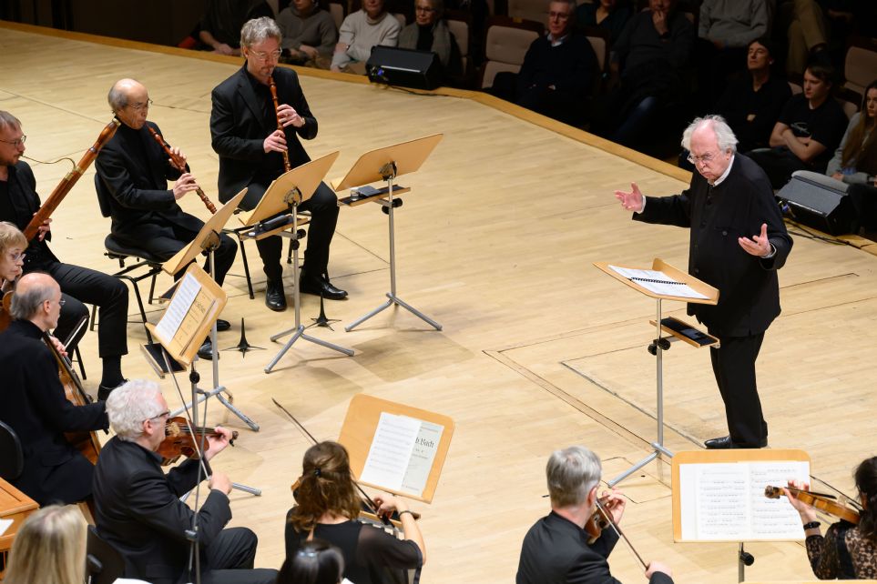 El bajo croata protagonizó la única aria –¡qué belleza la de su escritura!– de esta cantata, «Auf Gott steht meine Zuversicht», sostenida únicamente por cuerda y continuo. Se trata de un aria en forma de Menuet, puntuada con el conocido como «motivo de la alegría» [Schweitzer]. Así, la cantata que comenzó con una profunda tristeza se torna ahora en un momento de brillante convicción. Exquisita conexión de los violines barrocos con la elaboración del bajo en los violonchelos barrocos de los históricos Ageet Zweistra y Harm-jan Schwitters, junto al contrabajo barroco de Miriam Shalinsky. Solista de sonoridades timbradamente cavernosas, de muy solvente y limpio registro agudo, con zona media aposentada y grave bastante sólido, aunque algo falto de cuerpo, además de un cuidado trabajo de dicción. Qué bonita plasmación retórica sobre las palabras «Er will mich wunderlich erhalten» [Él me sostendrá maravillosamente], en la que la cuerda casi pareció abrazar al solista, remarcando esa amabilidad, logrando ambos un momento de conexión exquisito. El pasaje final, rebosante de melismas para el bajo, llegó plasmado con bastante solvencia, aunque en unas articulaciones par su parte levemente mecánicas. El jubiloso coral conclusivo [«Weil du mein Gott und Vater bist»], que aparece por tercera vez en la cantata, se entreteje con un rico acompañamiento orquestal, con un sonido del tutti de tanto empaque como finura, manejado con un gesto apenas perceptible por momentos en las manos siempre temblorosas de un Herreweghe al que apenas le hace falta gesticular para lograr lo que desea de unos excelentes músicos a los que ha logrado enseñar muy bien a lo largo de las últimas cuatro décadas.