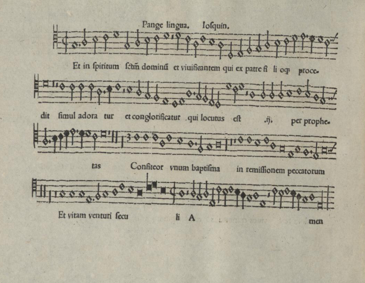 Final del Credo en la voz tenor de la Missa Pange lingua a 4, de Josquin des prez [Missae Tredecim Quatuor Vocum A Praestantiss, de Johannes Otto; Nürnberg, 1539].