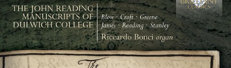 The John Reading Manuscripts of Dulwich College. Riccardo Bonci. Brilliant Classics, 2013. T.T.: 67'07. Obras de John Blow, John James, Maurice Green, John Stanley, Mr. Seedo, William Croft, John Barret y John Reading.