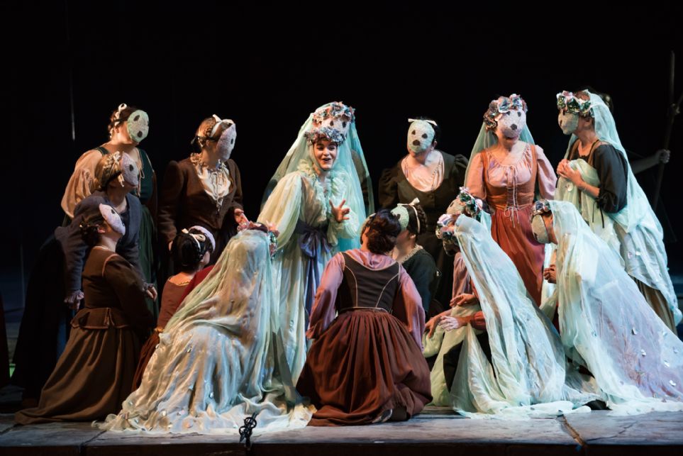 El reparto estuvo encabezado por Kirill Manolov que ha hecho del Sir John Falstaff uno de los caballos de batalla de su carrera, llegando a ser elegido por Riccardo Muti para el rol (recordemos su Falstaff ovetense de 2015 con el maestro napolitano en el foso del Teatro Campoamor). En el Maestranza ya era conocido después de su brusco Dulcamara de hace tres años (que realzó aún más la inolvidable Adina de Maria José Moreno) y esta vez dejó claro que este papel verdiano le cuadraba mejor, particularmente en lo que respecta a sus cualidades actorales y su comedido histrionismo, rematando un plausible retrato del orondo Falstaff. No obstante, la voz del búlgaro, si bien dotada de un importante volumen y proyección, es un tanto rígida y carece de maleabilidad suficiente para ofrecer el fraseo trabado, pleno de sutilezas, que requiere el personaje. En cualquier caso el público disfrutó con su actuación y llegó a ser el más aclamado al final de la representación, eso sí, tras… Nannetta. Ésta fue Natalia Labourdette, que en 2017 había ganado el Concurso de Nuevas Voces “Ciudad de Sevilla” y que aquí se metió al respetable en el bolsillo desde su primera aparición gracias a su canto comunicativo y a su musicalidad. El instrumento de la soprano madrileña posee una innegable homogeneidad en toda la tesitura, volumen y cierta anchura que le permite desplegar un fraseo lírico realmente interesante. Desde luego que tiene aún margen para dotar a su interpretación de más matices y contrastes, lo que en definitiva la convierte en una cantante a seguir.