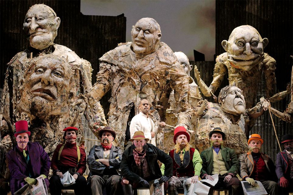 Y una buena representacion es lo que hemos podido disfrutar en la LA Opera, que completa la llamada Portrait Trilogy de Glass sobre hombres que cambiaron la historia, tras recientes presentaciones de Akhnaten y Einstein on the Beach. Un elemento fundamental de este éxito es la producción de Phelim McDermott, creada para la English National Opera y la Metropolitan Opera y que ya debe considerarse como de referencia para esta ópera. McDermott, en colaboración con Julian Crouch como regista asociado y escenógrafo y con la ayuda de una excelente iluminación, logra tanto crear el ambiente adecuado como infundir progresión dramática.